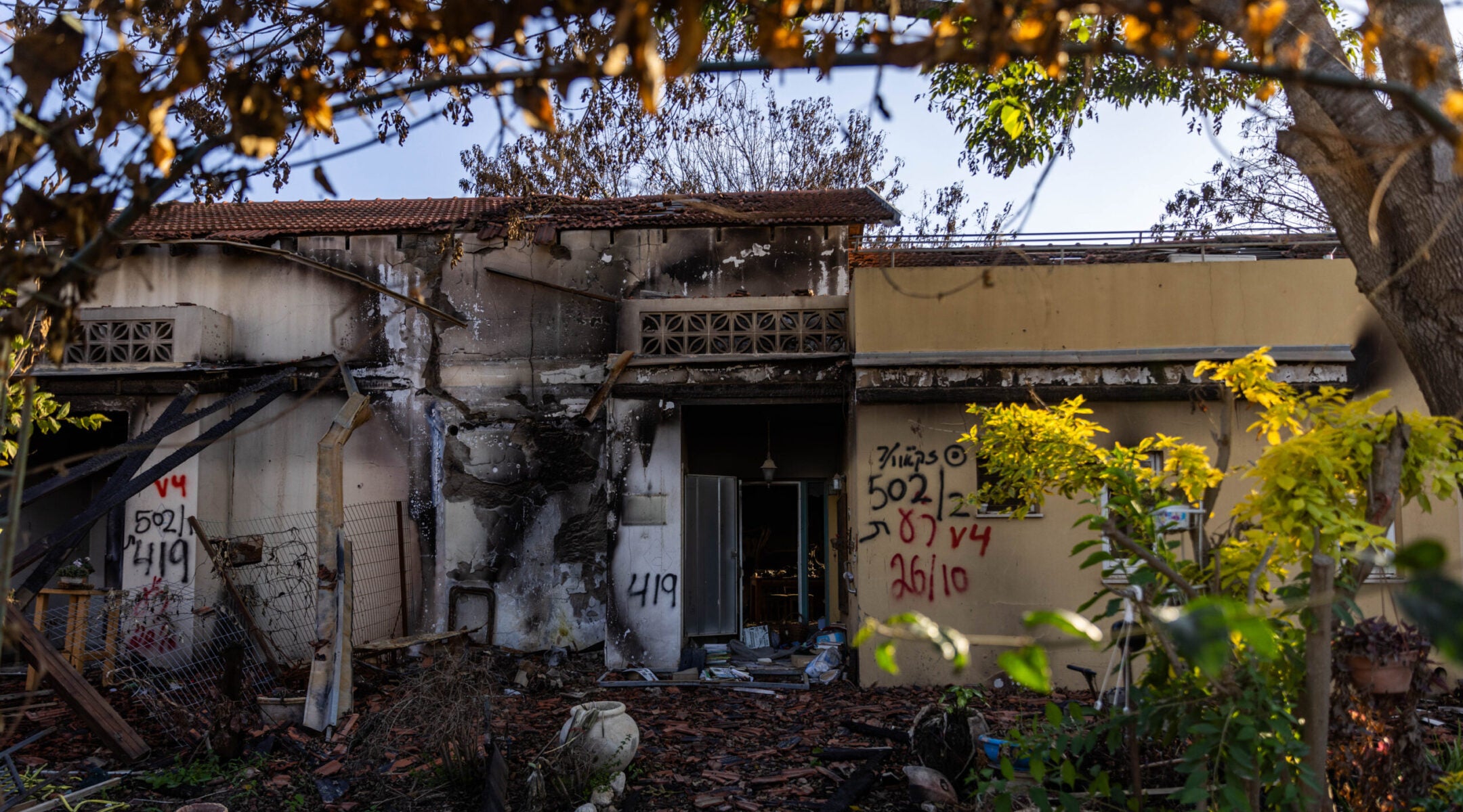 The remains of the destruction caused by Hamas terrorists when they infiltrated Kibbutz Be’eri on October 7, 2023, near the Israeli-Gaza border, southern Israel, as seen on Jan. 4, 2024. (Chaim Goldberg/Flash90)