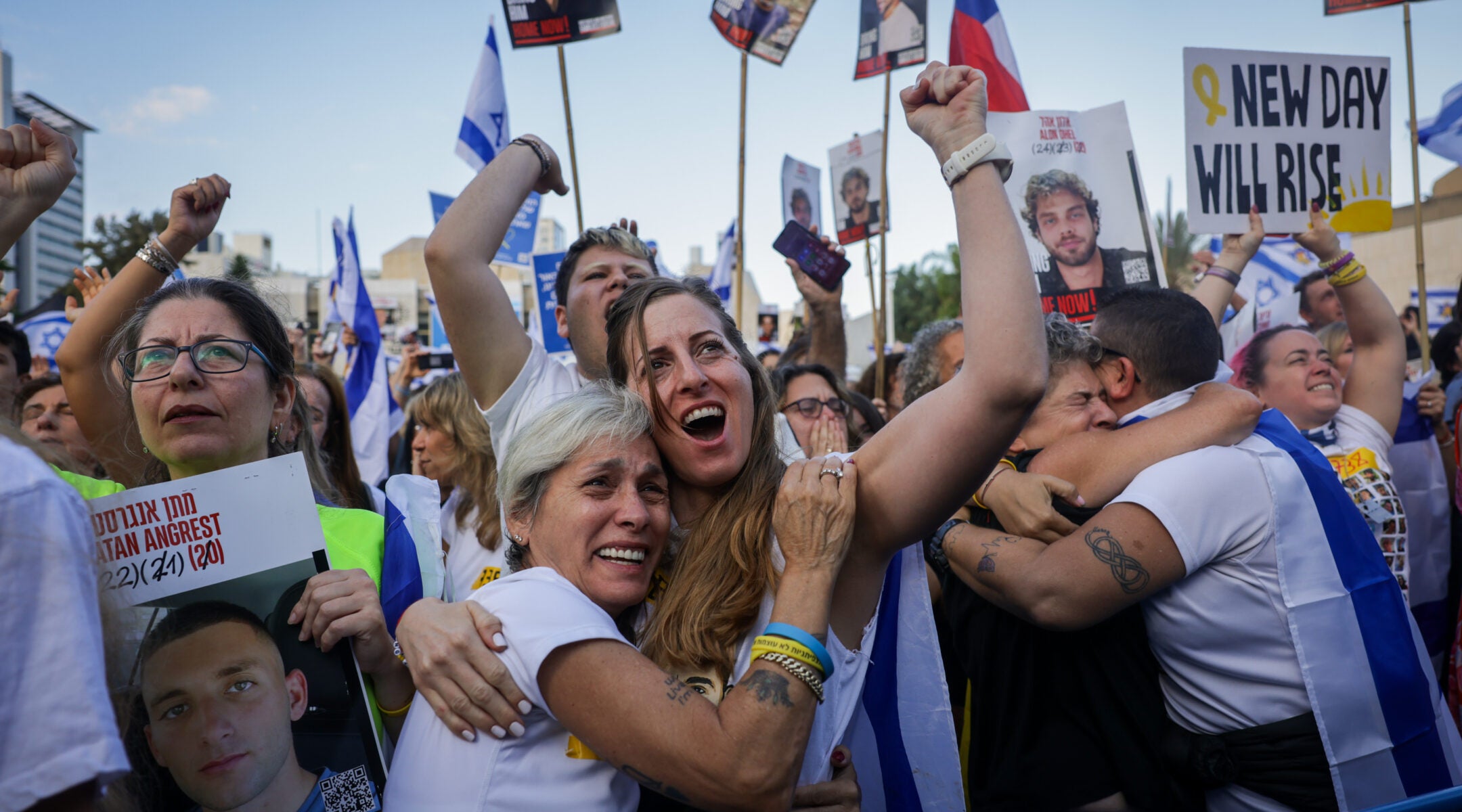 The videos and photographs elicited joyous cheers from the tens of thousands of people who gathered in Hostages Square in Tel Aviv, where the site of pained prayer was transformed into a central address for jubilation. The massive “Bring Them Home” letters that had loomed over the square for most of the last two years were revised on Sunday night to say, “Welcome Back Home.”